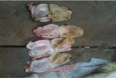 腺胃腫大如球狀、腺胃乳頭變平、胃壁增厚,雞內(nèi)金易剝離、糜爛、潰瘍,肌胃糜爛、潰瘍、嚴重的穿孔,以及角質(zhì)層和肌肉層之間有白斑的現(xiàn)象。