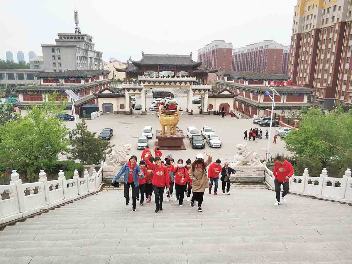 5月9日(周六)早8:00,天氣清爽。公司為大家精心準(zhǔn)備豐盛的食品也都分發(fā)下去了,整理隊(duì)伍,我們?cè)诠鹃T口合影留念后紛紛上車前往目的地,伙伴們?cè)谕局杏姓f有笑,熱情不減,情緒高昂,經(jīng)過半個(gè)小時(shí)的輾轉(zhuǎn),順利到達(dá)目的地凌海九華山,我們先吃了點(diǎn)食物稍作休息,整理隊(duì)伍在山門口合影留念。