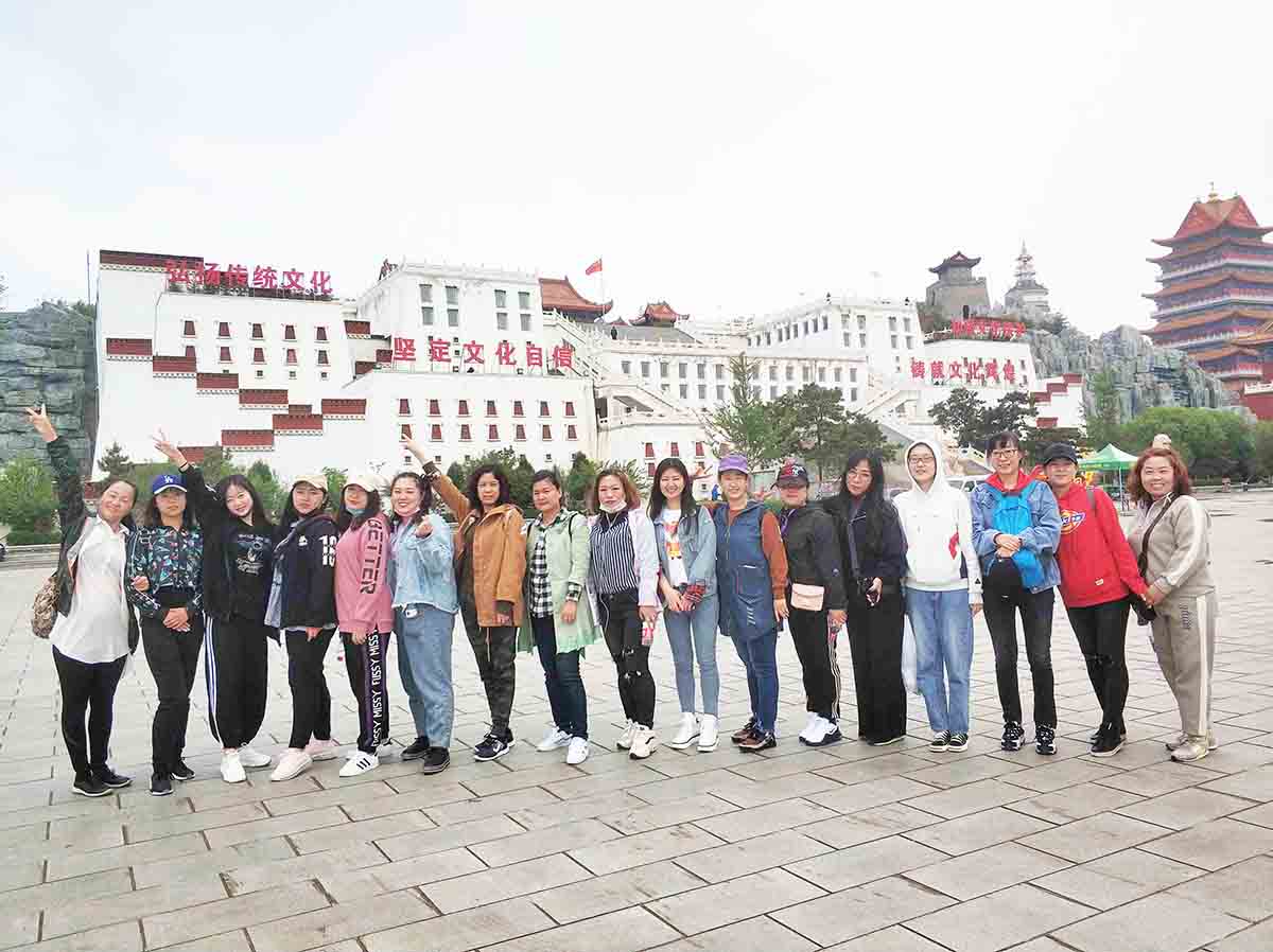 征服九華山頂峰之后,我們順勢(shì)而下,游覽了著名的慈海寺。學(xué)著周圍虔誠(chéng)燒香拜佛的樣子,我們滿懷虔誠(chéng),感受著古代建筑的大氣與恢弘,也為自己許下美好的愿望。我們接著向小布達(dá)拉宮出發(fā)了。一路我們徒步前進(jìn),小白因?yàn)槠綍r(shí)鍛煉的少,在下山的時(shí)候走的太急,腳抽筋了,經(jīng)驗(yàn)豐富的李主管立刻上來按摩,還囑咐多甩一甩腿。多虧她的悉心照顧,小白的腳好多了,不影響繼續(xù)步行。小白打趣說“自從來到九華山,腰不疼了,腿不抽了,心也不跳了,感覺越來越年輕!”大家都笑了,氣氛十分活躍。大家心情舒暢,開心地笑著、玩著,互相交流著,活動(dòng)氣氛熱烈,歡聲笑語(yǔ)聲在山林中飄蕩。沒多久我們就來到了小布達(dá)拉宮,領(lǐng)略西域文化的洗禮,感受別樣風(fēng)情。
