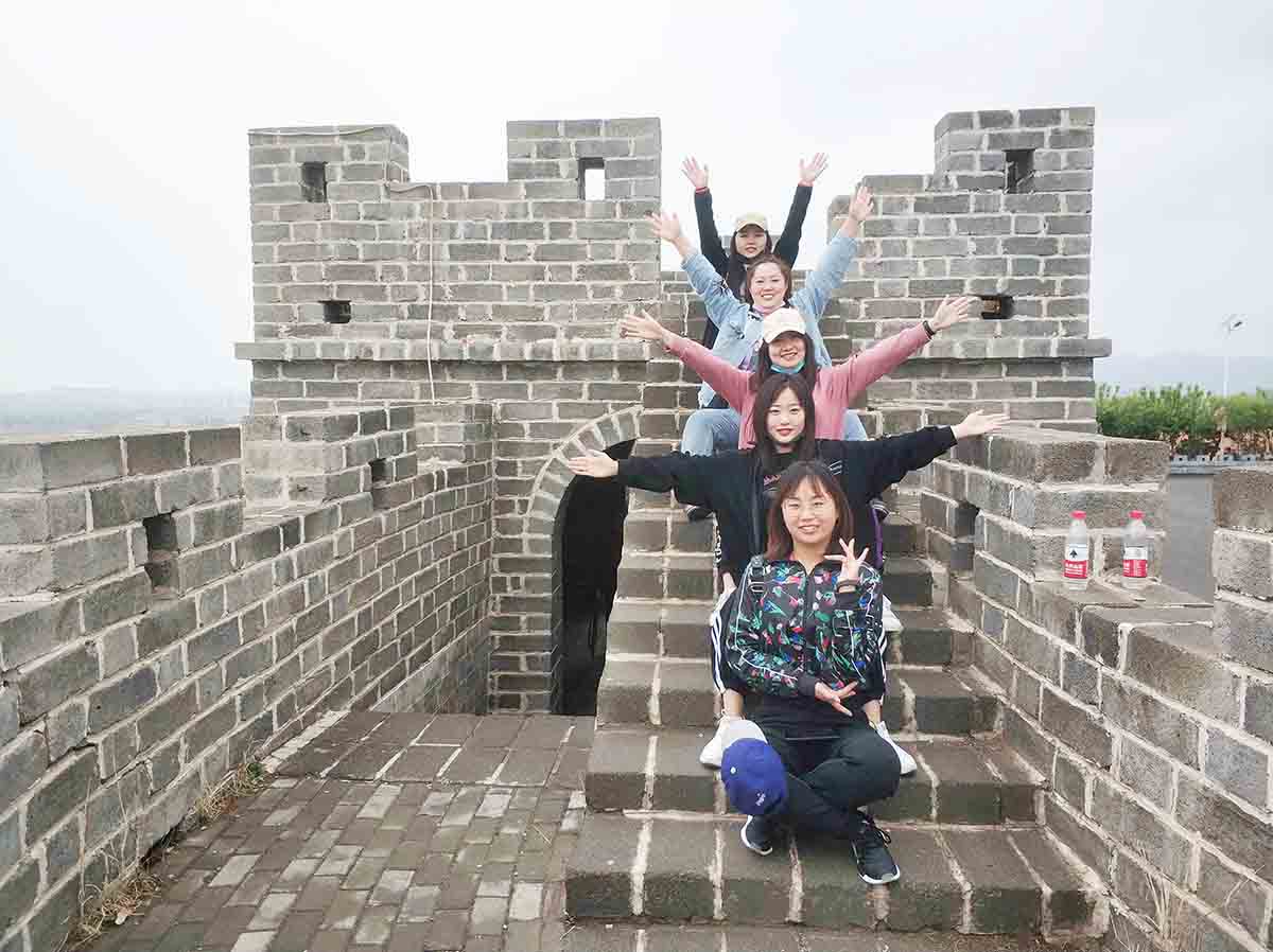 最后我們游覽了長(zhǎng)城,置身于美麗的大自然中,我們合影以作留念。愛拍照的美女?dāng)[好各種新奇特的POSE展現(xiàn)出當(dāng)代新青年的青春與活力。我們一路同行時(shí)而被仙湖水中金魚嬉戲,層巒疊嶂的山峰吸引,時(shí)而又對(duì)空中樓閣,庭宇院落、繁花美景所嘆為觀止。我們一路走一路拍,一路歡聲笑語(yǔ),收獲著屬于自己、屬于團(tuán)隊(duì)的喜躍!