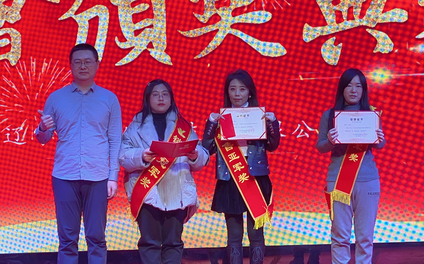 周瑜獲得集團(tuán)事業(yè)部2023年度超目標(biāo)獎(jiǎng)、集團(tuán)事業(yè)部年度銷售冠軍獎(jiǎng);李榮久獲得集團(tuán)事業(yè)部2023年度超目標(biāo)獎(jiǎng);邵丹獲得集團(tuán)事業(yè)部2023年度超目標(biāo)獎(jiǎng)。嘉賓李占忠先生、總經(jīng)理王鐵良先生為獲獎(jiǎng)?wù)哳C獎(jiǎng)。